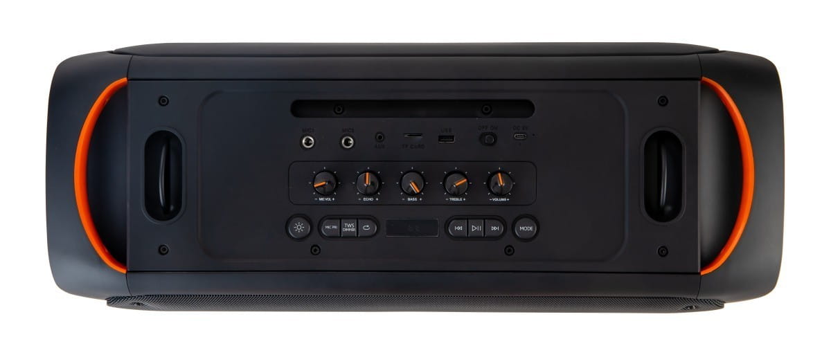 - Tryby: bluetooth, TWS, radio FM, pen drive, karta microSD, AUX, Microphone IN (karaoke),