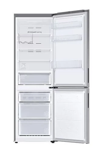 Technologia pełnego No Frost marki Samsung zapewnia stały obieg chłodnego powietrza, systematycznie usuwając nadmiar wilgoci z wnętrza lodówki. Dzięki temu lód i szron nie osadzają się na ściankach czy produktach. Żywność zachowuje świeżość i wartości odżywcze na dłużej, a utrzymanie czystości jest łatwiejsze bez rozmrażania.