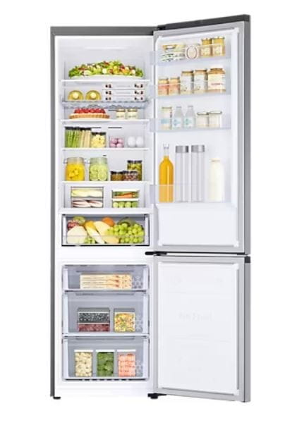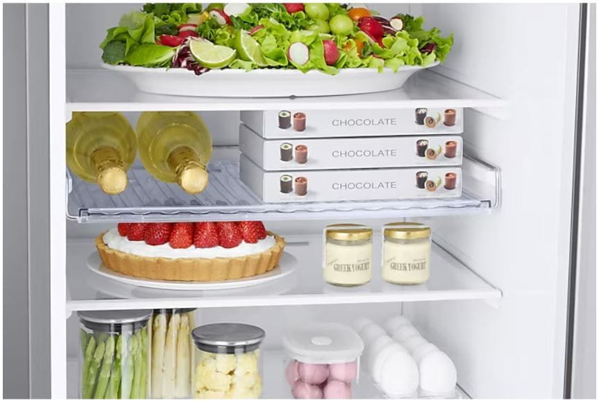 Technologia pełnego No Frost marki Samsung zapewnia stały obieg chłodnego powietrza, systematycznie usuwając nadmiar wilgoci z wnętrza lodówki. Dzięki temu lód i szron nie osadzają się na ściankach czy produktach. Żywność zachowuje świeżość i wartości odżywcze na dłużej, a utrzymanie czystości jest łatwiejsze bez rozmrażania.