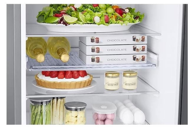 Nowa konstrukcja lodówki oraz innowacyjne rozwiązania zastosowane w naszym niezawodnym kompresorze zapewniają jego wydajność i cichą pracę. Nowe technologie Samsung redukują odgłosy i drgania urządzenia, dzięki czemu jest to jedna z najcichszych lodówek na rynku osiągając poziom jedynie 35 dB Swobodnie wsuwaj i wysuwaj półkę, gdy sięgasz po rzeczy umieszczone głębiej w lodówce lub chcesz postawić w niej wysoki pojemnik czy butelki. Dzięki temu rozwiązaniu utrzymasz porządek, a produkty będą zawsze pod ręką!