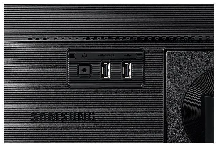 Monitor biznesowy Samsung nie wymaga dokupowania dodatkowych urządzeń peryferyjnych. Z wbudowanymi głośnikami zapewnia dobry dźwięk podczas wideokonferencji czy oglądania multimediów. Dodatkowo zachowasz więcej miejsca na biurku.