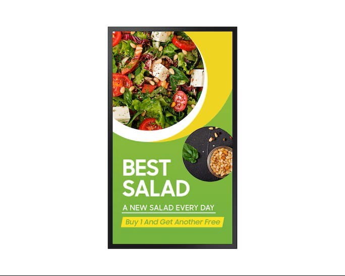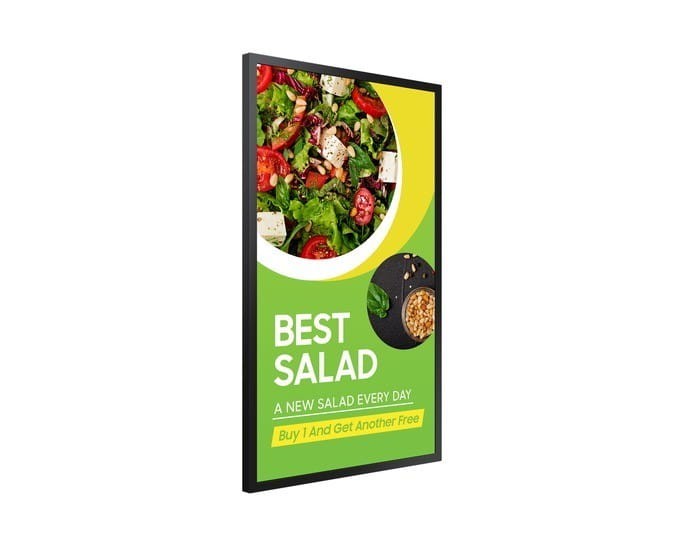 Ekrany Samsung Window Signage zwiększają atrakcyjność witryny sklepowej i przyciągają uwagę klientów. Wysoka jasność ekranu zapewnia doskonałą widoczność obrazu, nawet w bezpośrednim świetle słonecznym. Smukła konstrukcja umożliwia maksymalne wykorzystanie przestrzeni, jednocześnie tworząc angażujące wrażenia wizualne.