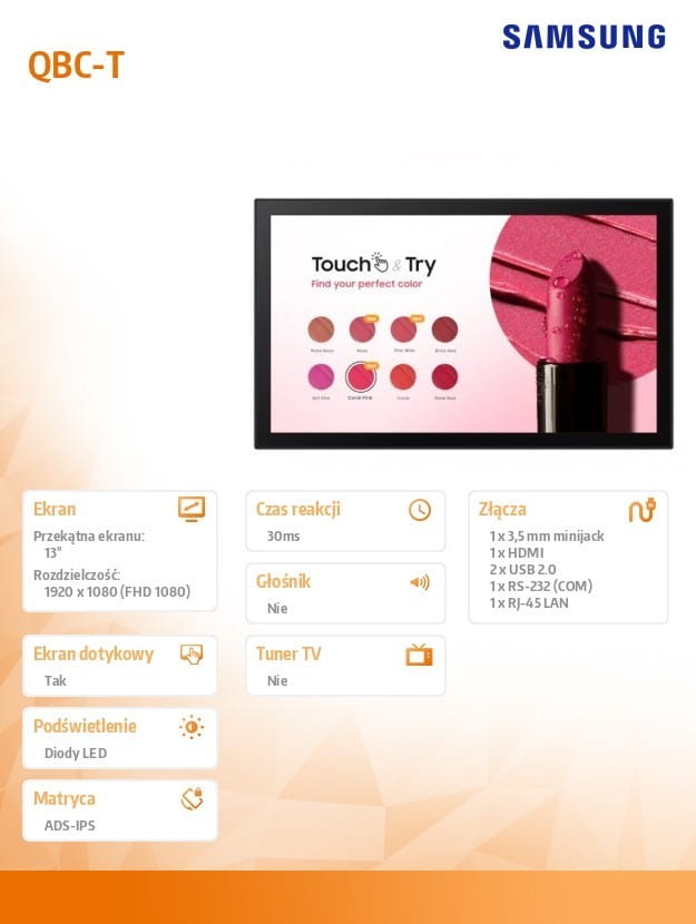 Samsung Monitor dotykowy 13 cali QB13C-T LH13QBCTBGBXEN