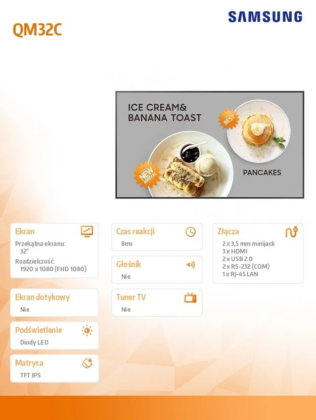 Samsung Monitor profesjonalny QM32C 32 cale Błyszcząca/IPS 24h/7 400(cd/m2) 1920x1080 (FHD) S10 Player (Tizen 7, VXT Ready) Wi-Fi/BT 3 lata d2d