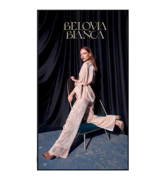 QHFX umożliwia instalację zarówno w orientacji poziomej, jak i pionowej, zapewniając elastyczne zastosowanie w różnorodnych przestrzeniach. Orientacja pionowa ożywia pełnowymiarowe wizualizacje takie jak dynamiczne prezentacje produktów, zdjęcia z sesji modowych czy wielkoformatowe wideo o marce - poszerzając możliwości dla efektownych wyświetlaczy.