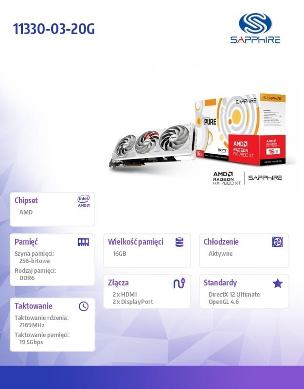 Sapphire Technology Karta graficzna Radeon RX 7800 XT PURE GAMING OC 16GB GDDR6 256bit 2DP