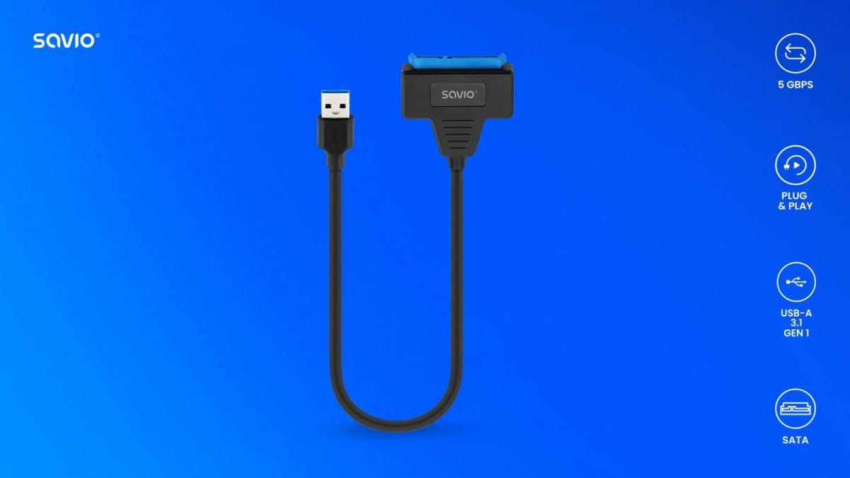 Savio Adapter USB-A 3.1 Gen 1 (M) - SATA (F) do dysków SATA 2.5 cala , AK-68