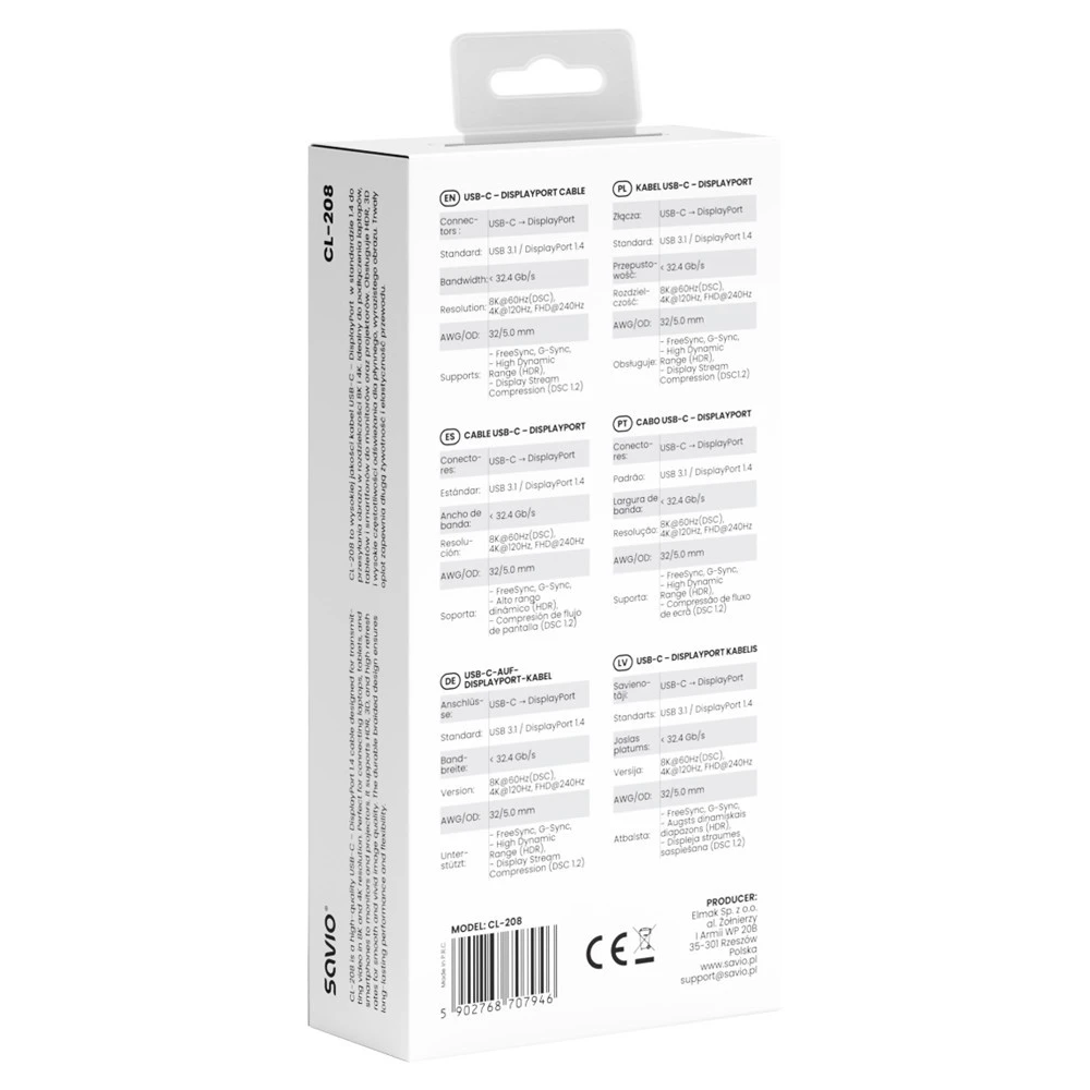 Savio Kabel USB-C do Display Port 8K 60Hz, 2m CL-208