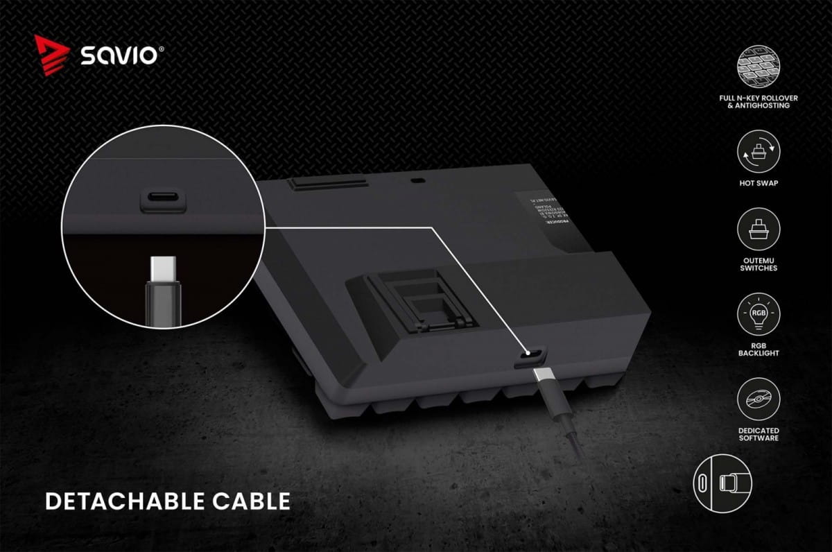 Blackout X2 został wyposażony w odłączany kabel USB-C, który ułatwia transport i przechowywanie klawiatury. Dzięki temu rozwiązaniu szybko podłączysz urządzenie do komputera, a gdy potrzebujesz zabrać ją na turniej, do pracy, czy po prostu uporządkować biurko- wystarczy odpiąć przewód. Solidne złącze gwarantuje stabilne połączenie, a sam kabel możesz łatwo wymienić lub zastąpić wersją w ulubionym stylu.