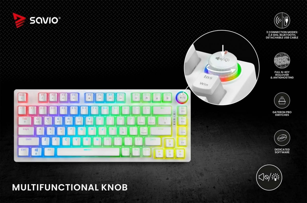 Savio Klawiatura mechaniczna bezprzewodowa SAVIO PHENIX WHITE Gateron Yellow, Pudding