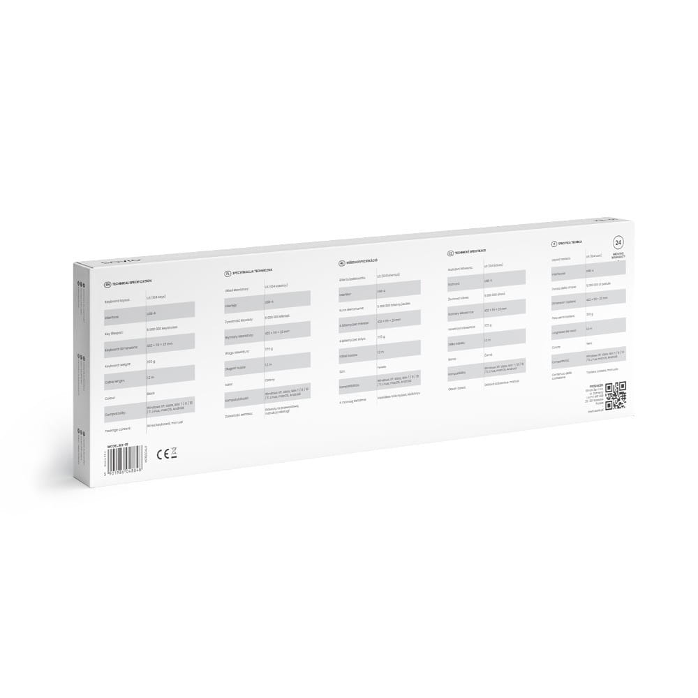 Lekka i solidna konstrukcja zapewnia wygodę i stabilność podczas użytkowania, a klasyczny, czarny kolor sprawia, że klawiatura prezentuje się elegancko i pasuje do każdego stanowiska pracy.