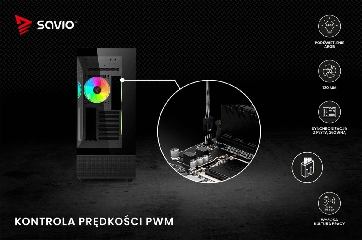 Savio Wentylator BLAST 120mm ARGB 3-pin 5V, 4-pin 12V