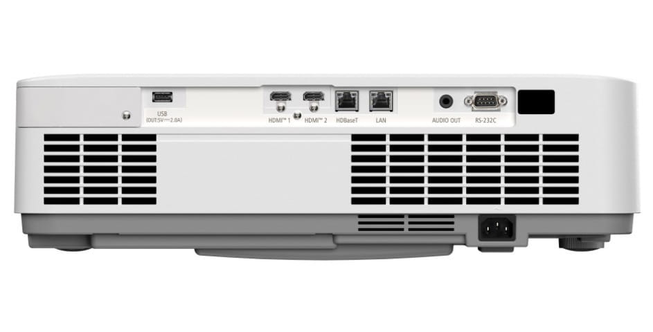 Gniazda we/wy: 1 x USB (Type B) Serwisowe, 1 x USB 2.0, 1 x 3,5 mm minijack, 1 x 9-pin D-Sub, 1 x HDBaseT, 1 x RJ-45 LAN, 2 x HDMI