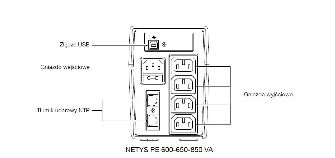 Zasilacz UPS NETYS PE moc 650VA/360W 230V 50/60Hz automatyczna regulacja napięcia AVR, bateria wewnętrzna, 4xIEC 320 C13 (10A), ochrona linii danych NTP, port USB, diody LED