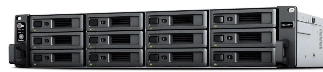 12-kieszeniowe urządzenie RS2423+/RS2423RP+ o wysokości 2U można w prosty sposób dostosować do środowiska użytkowania, niezależnie od tego, czy potrzebna jest większa wydajność, szybsza praca w sieci czy większa pojemność pamięci masowej.