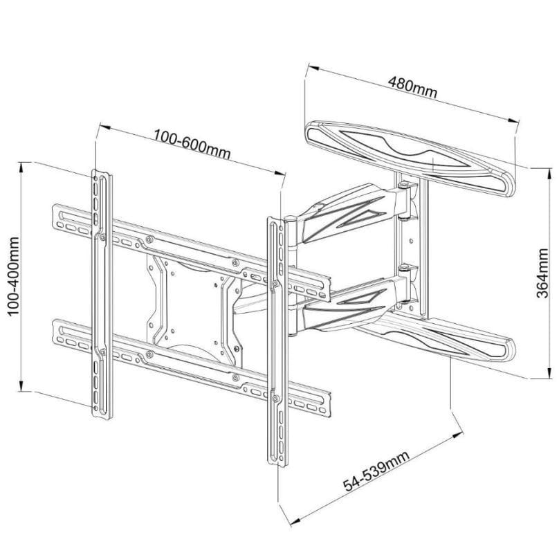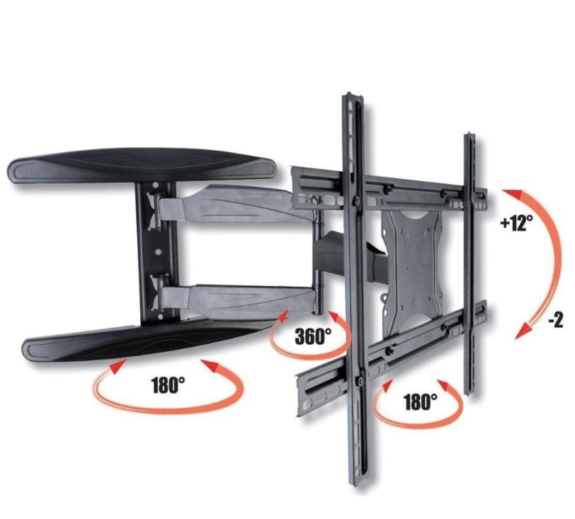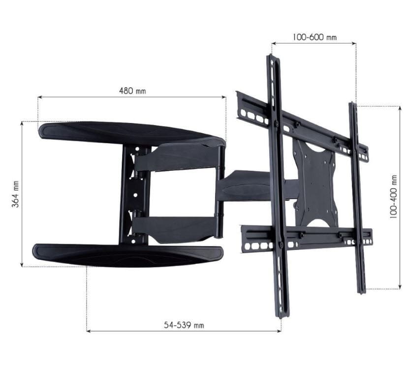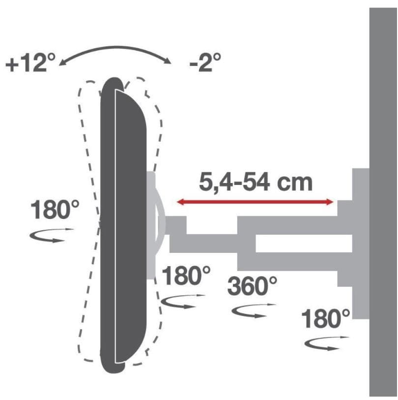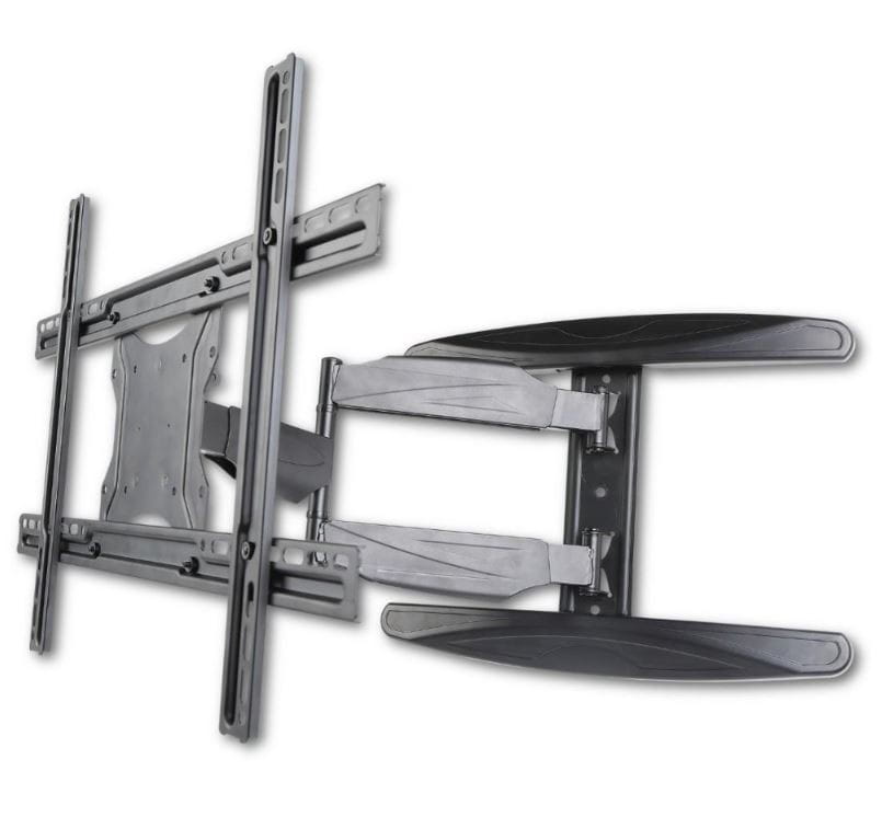 Wiele innych uchwytów, które można przechylić do przodu, a także obrócić/odchylić w lewo i prawo, jest dość dużych i nie można ich złożyć bardzo kompaktowo, co utrudnia ustawienie telewizora blisko ściany. Ten uchwyt nie ma tego problemu: można go złożyć do 54 mm od ściany .