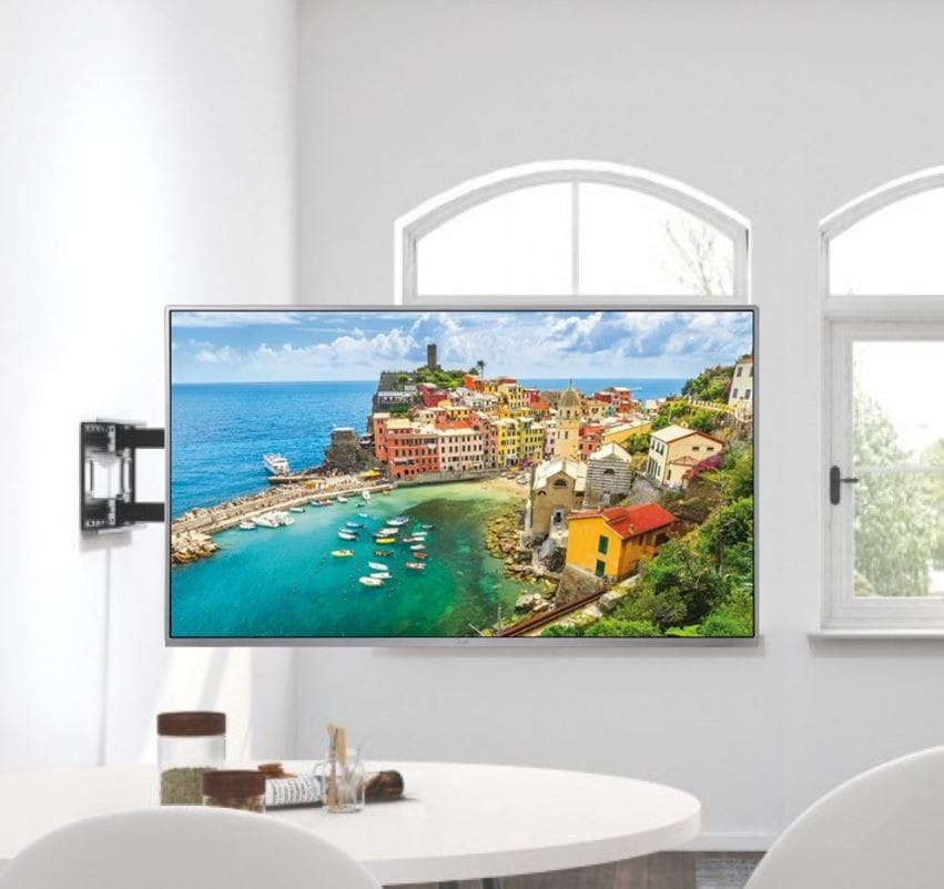 Wysuwany uchwyt do telewizora z wysięgnikiem 1015 mm i niemal nieograniczoną możliwością obrotu.