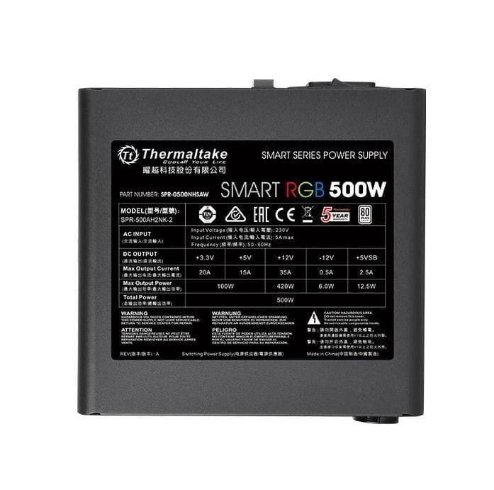 Thermaltake Smart 500W RGB (80+ 230V EU, 2xPEG, 120mm, Single Rail)