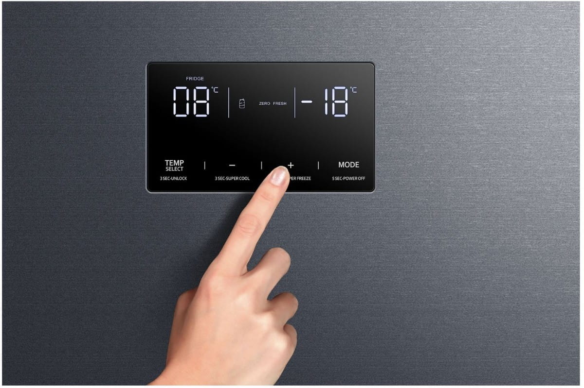 Łatwa kontrola lodówki dotykiem: widoczna temperatura, szybkie chłodzenie, tryb wakacyjny.