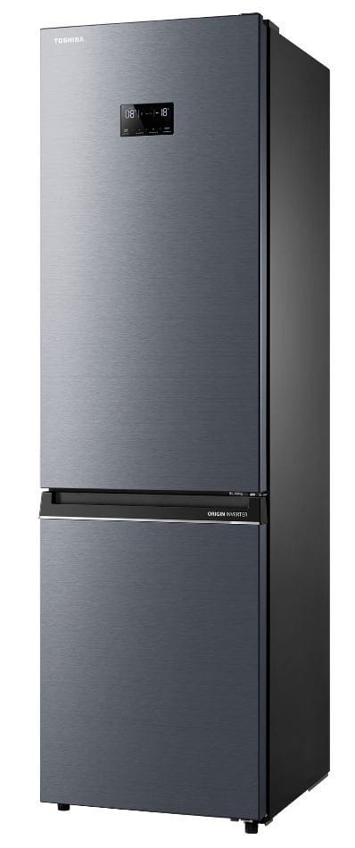 Lodówka TOSHIBA jest wyposażona w 2 inwertery: inwerter sprężarki i inwerter wentylatora, które pracują z tą samą częstotliwością aby zapewnić szybkie i jednolite chłodzenie. Gdy temperatura wewnątrz jest wyższa niz ustawiona, 2 inwertery zaczynają przyspieszać w tym samym czasie, aby zapewnić większy przepływ zimnego powietrza. Ten system szybkiego sprzężenia zwrotnego zapewnia najlepsze warunki do przechowywania żywności.