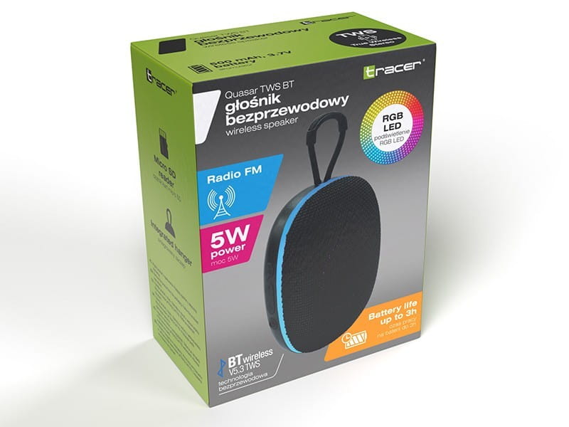 Tracer Quasar TWS BT to kompaktowy i lekki głośnik, który zawsze możesz mieć przy sobie. Dzięki praktycznej zawieszce, solidnej konstrukcji sprawdzi się zarówno w plenerze, jak i na co dzień.