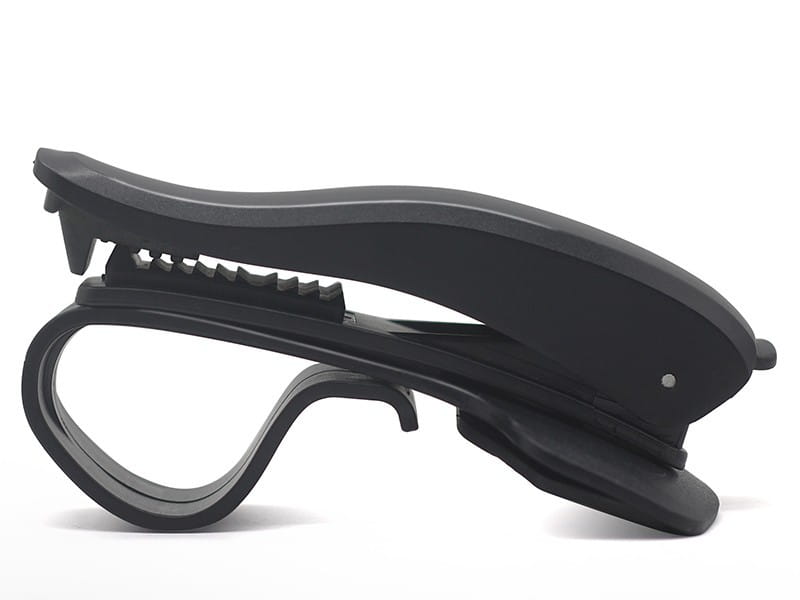 Uchwyt na telefon z możliwością montażu do deski rozdzielczej samochodu. Rodzaj mocowania i mocny chwyt pozwalają zachować stabilność urządzenia przy ciężkich warunkach drogowych.