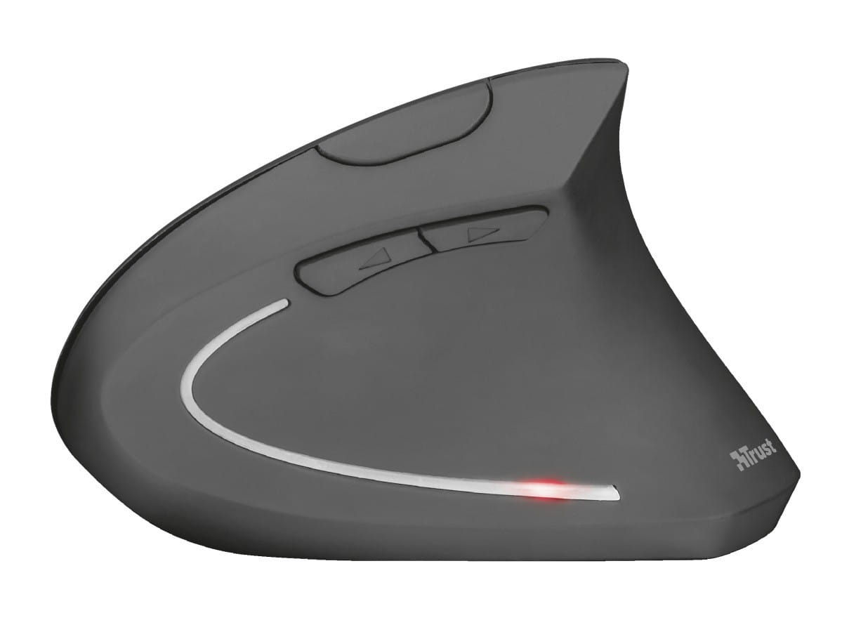 Bezprzewodowa, ergonomiczna mysz o pionowej konstrukcji zmniejsza zmęczenie przedramienia i nadgarstka.