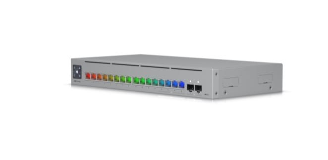 USW-Pro-Max-16 to 16-portowy przełącznik warstwy 3 Etherlighting z obsługą 2,5 GbE, oferujący wszechstronne opcje montażu. Każdy port jest wyposażony w podświetlanie Etherlighting, co ułatwia identyfikację lokalizacji portu, prędkości/łącza oraz natywnej sieci VLAN. Przełącznik posiada cztery porty RJ45 2,5 GbE, dwanaście portów GbE RJ45 oraz dwa porty 10G SFP+. Możliwość montażu na biurku, ścianie lub w szafie rack(wymaga dodatkowych akcesoriów do montażu w szafie) sprawia, że jest idealnym rozwiązaniem do różnych środowisk. Dodatkowo, cichy, bezwentylatorowy system chłodzenia zapewnia niezawodną i dyskretną pracę urządzenia.