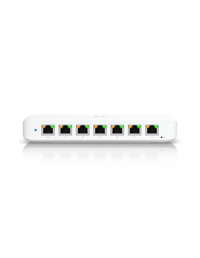 Ultra (USW-Ultra 42W) to kompaktowy, 8-portowy przełącznik GbE PoE warstwy 2, oferujący wszechstronne opcje montażu. Posiada 7 portów wyjściowych GbE PoE+ oraz 1 port wejściowy GbE PoE++. Zapewnia zasilanie PoE 42 W z wejściem PoE++ oraz 16 W PoE z wejściem PoE+. Wejście PoE jest obsługiwane do działania przełącznika, z wejściem PoE+/PoE++ lub zasilaniem AC wymaganym do wyjścia PoE.