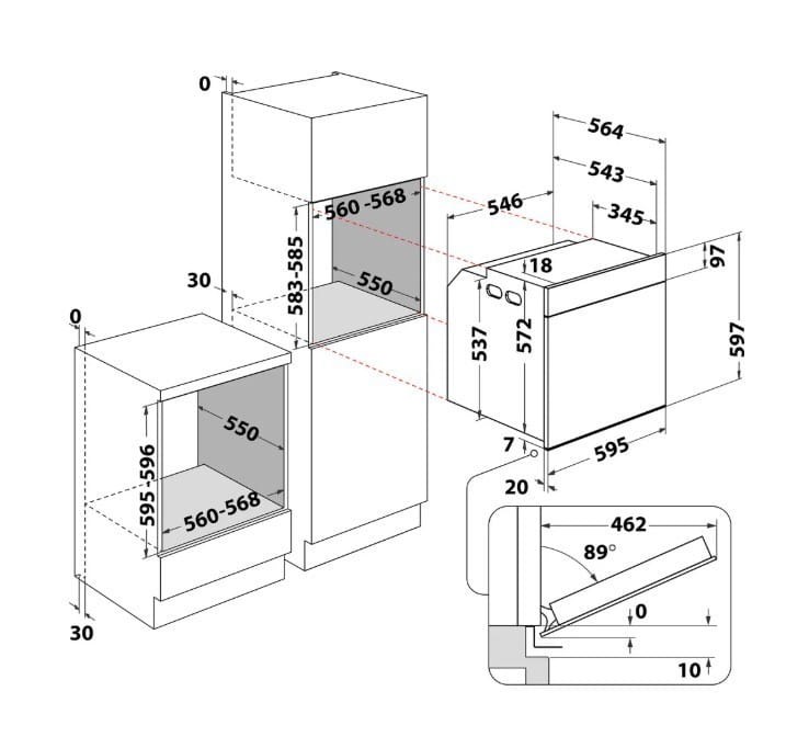 Szerokość zabudowy: 59.5 cm