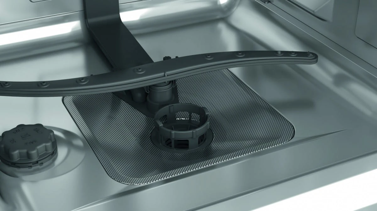 Wnętrze zmywarki ze stali nierdzewnej sprawia, że naczynia są zawsze błyszczące, a środek urządzenia jest perfekcyjnie czysty.