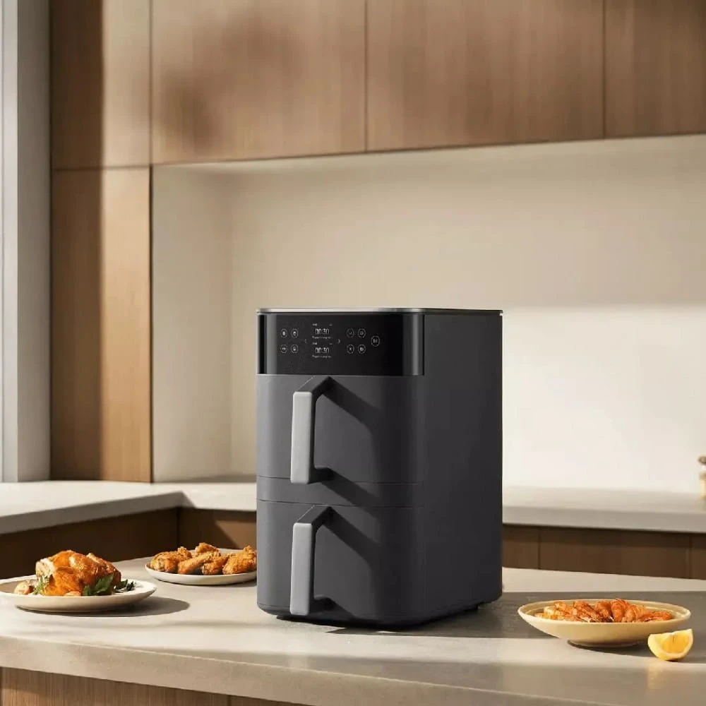 Zachowaj porządek w kuchni dzięki Xiaomi Smart Double Stack Air Fryer 12 l frytownicy beztłuszczowej, która umożliwia przygotowanie dwóch potraw jednocześnie dzięki podwójnym koszom.