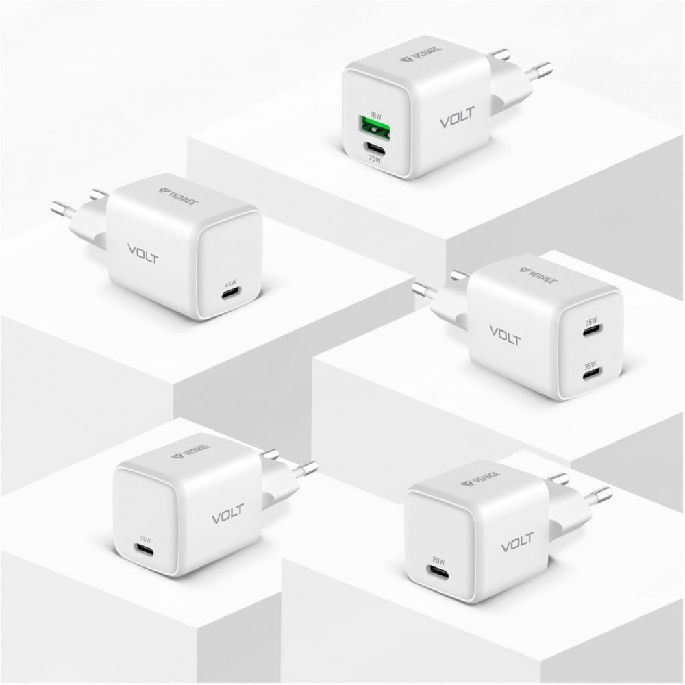 Ładowarka GaN VOLT oferuje wysoką wydajność, kompaktowy rozmiar i wszechstronne zastosowanie. Szybkie i bezpieczne ładowanie urządzeń mobilnych zapewniają dwa złącza wyjściowe USB typu C o maksymalnej mocy 35 W oraz obsługa protokołów ładowania QC 4.0+, PD 3.0, AFC, FCP i innych. Nie potrzebujesz już różnych ładowarek do różnych urządzeń. Uniwersalna ładowarka VOLT pasuje do większości urządzeń mobilnych, takich jak telefony, tablety i inne akcesoria elektroniczne. Polegaj na bezpiecznym i szybkim ładowaniu dzięki obsłudze protokołów ładowania