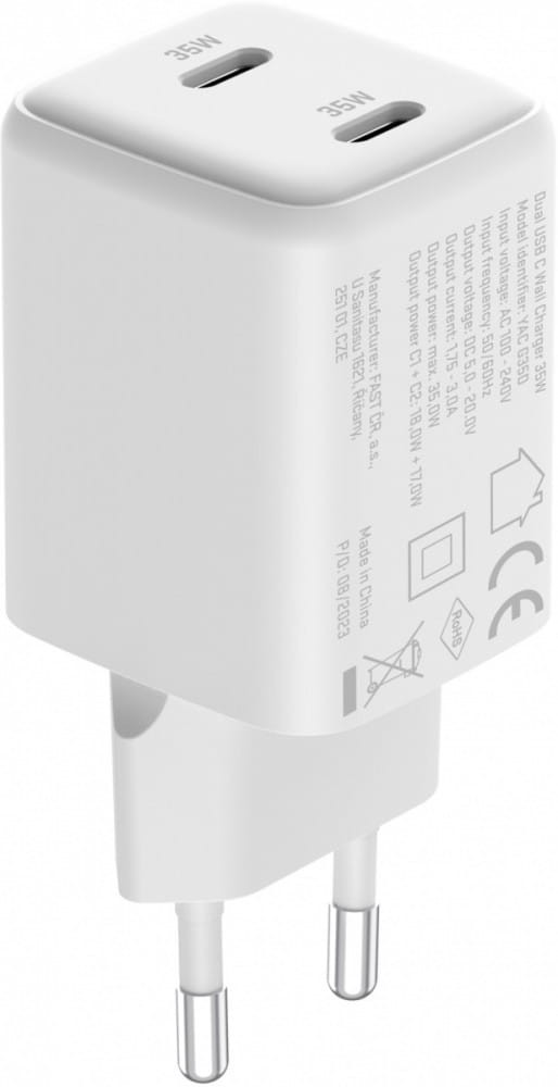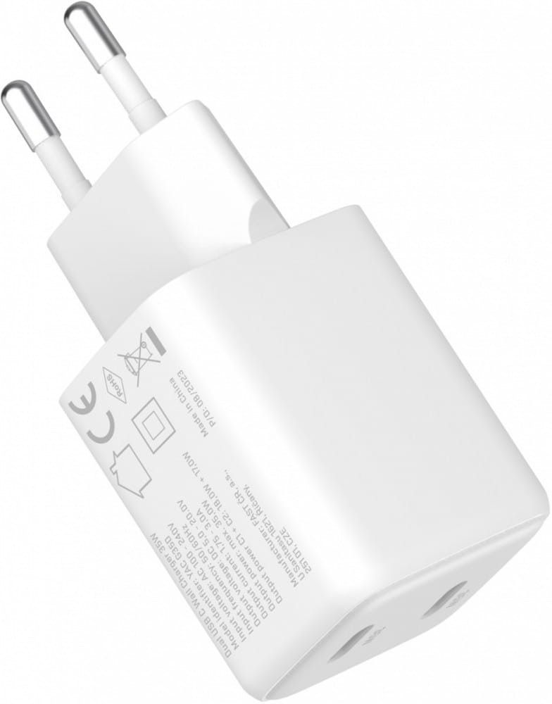 Dwa porty wyjściowe USB C umożliwiają zasilanie dwóch urządzeń jednocześnie. Gdy podłączony jest tylko jeden port USB-C, port osiąga maksymalną moc ładowania do 35 W. Gdy oba porty są podłączone w tym samym czasie, maksymalna moc ładowania portu C1 wynosi 17 W, a portu C2 wynosi 18 W. Innowacyjna technologia GaN (Gallium Nitride) pozwala ładowarce zmniejszyć rozmiar obudowy nawet o 30% i nadal oferować wysoką moc wyjściową do 35W. Dzięki niewielkiej masie i kompaktowym rozmiarom jest idealna w podróży lub jako ładowarka zapasowa. Dla zapewnienia maksymalnego bezpieczeństwa ładowarkę wyposażono w zwiększoną ochronę przed przepięciem, przeciążeniem, zapaleniem się i zwarciem.