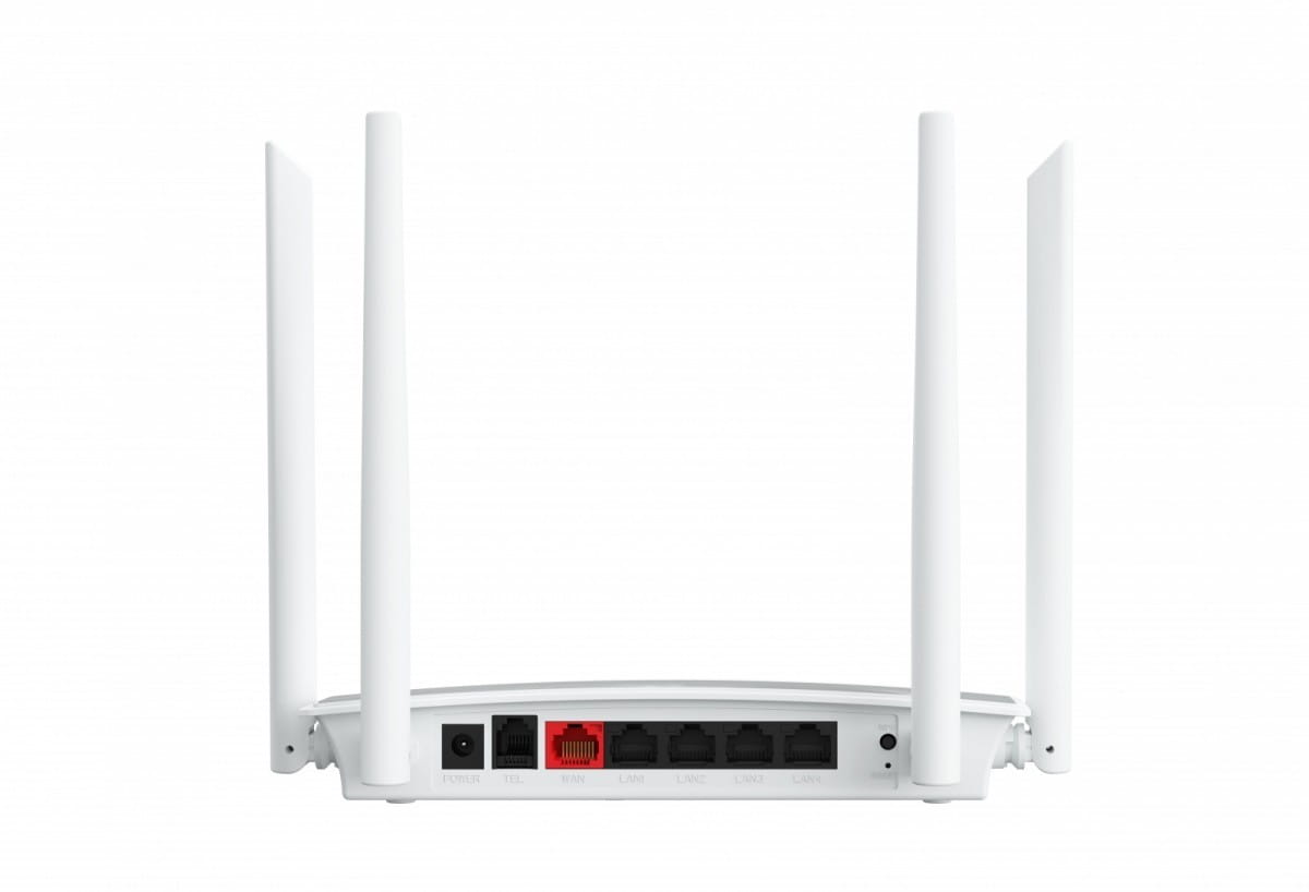 Router wewnętrzny obsługuje WiFi6 AX3000, dzięki czemu transfer bezprzewodowy w tej sieci może osiągnąć prędkości do nawet 3000 Mb/s. W razie potrzeby podłączenia urządzeń w tradycyjny sposób, przy użyciu kabla z wtykiem RJ45, sprzęt wyposażony jest w aż cztery porty LAN. Dla ułatwienia parowania na obudowie znalazł się przycisk WPS.