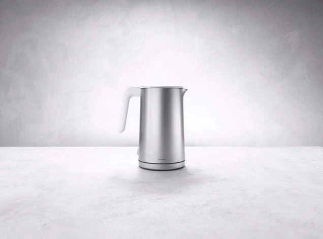 ZWILLING ENFINIGY przedstawia kolejny designerski must-have nowoczesnej kuchni: wysokiej jakości czajnik elektryczny z izolacją ciepła w 2 rozmiarach. Dwuścienna obudowa tego urządzenia o mocy 1850 Watt gwarantuje utrzymanie temperatury przez długi czas przy jednoczesnym zachowaniu przyjemnie chłodnej ściany zewnętrznej. Dodatkowo możliwość otwarcia do 70 stopni zapobiega bezpośredniemu kontaktowi z gorącą wodą i parą.