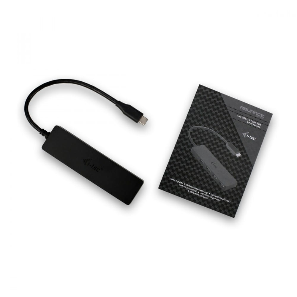 Akcesoria w zestawie: - i-tec USB-C 3.1 Slim HUB 4 Port z wbudowanym USB-C kablem (20 cm)- Instrukcja