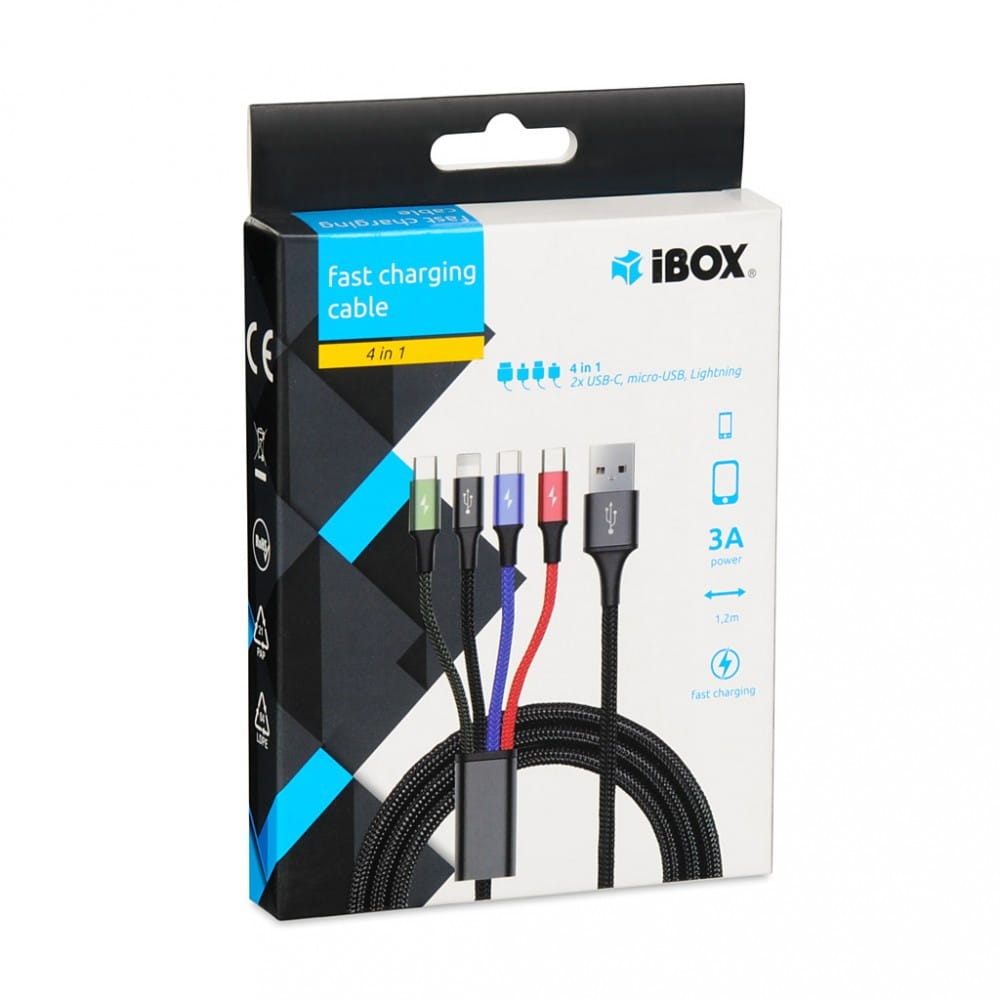 iBOX KABEL USB 4W1 2XUSB-C, MICROUSB, LIGHTNING
