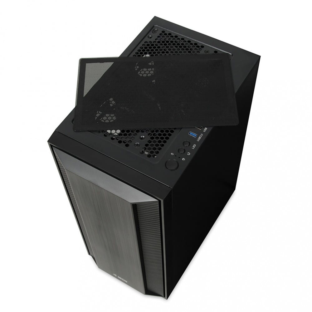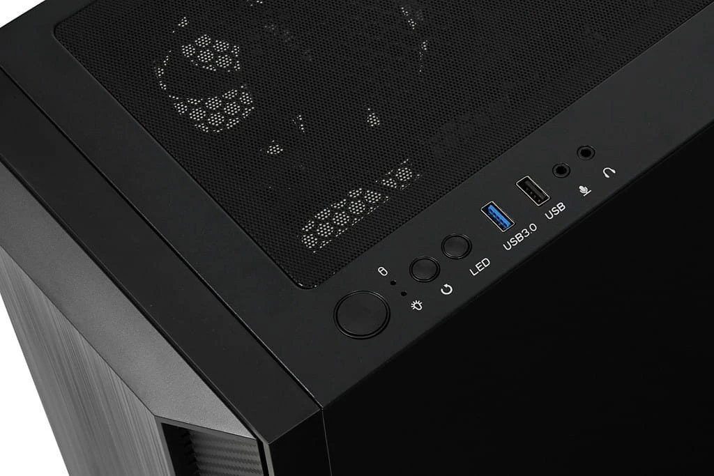 Obudowa wyposażona jest w filtr mocowany magnetycznie, ograniczający dostęp kurzu do wnętrza. Boczny panel wykonany został z wytrzymałego, hartowanego szkła, zapewniającego niesamowitywygląd połączony z solidną konstrukcją. Na górze obudowy zamontowane zostały dwa podświetlane wentylatory w rozmiarze 140 mm, zapewniające cichą pracę i ciekawe efekty wizualne wewnątrz obudowy. Z tyłu oraz przodu znajdują się wentylator 120 mm, zapewniający doskonałe odprowadzanie ciepła z wnętrza obudowy. Czarna, elegancka struktura poza walorami estetycznymi, dostarcza multum praktycznych rozwiązań. Zasilacz odseparowany jest od pozostałych podzespołów dzięki specjalnie zaprojektowanemu tunelowi. Porty USB, włącznik, reset, przycisk wł/wył oświetlenia LED oraz porty HD Audio znajdują się na górze obudowy.